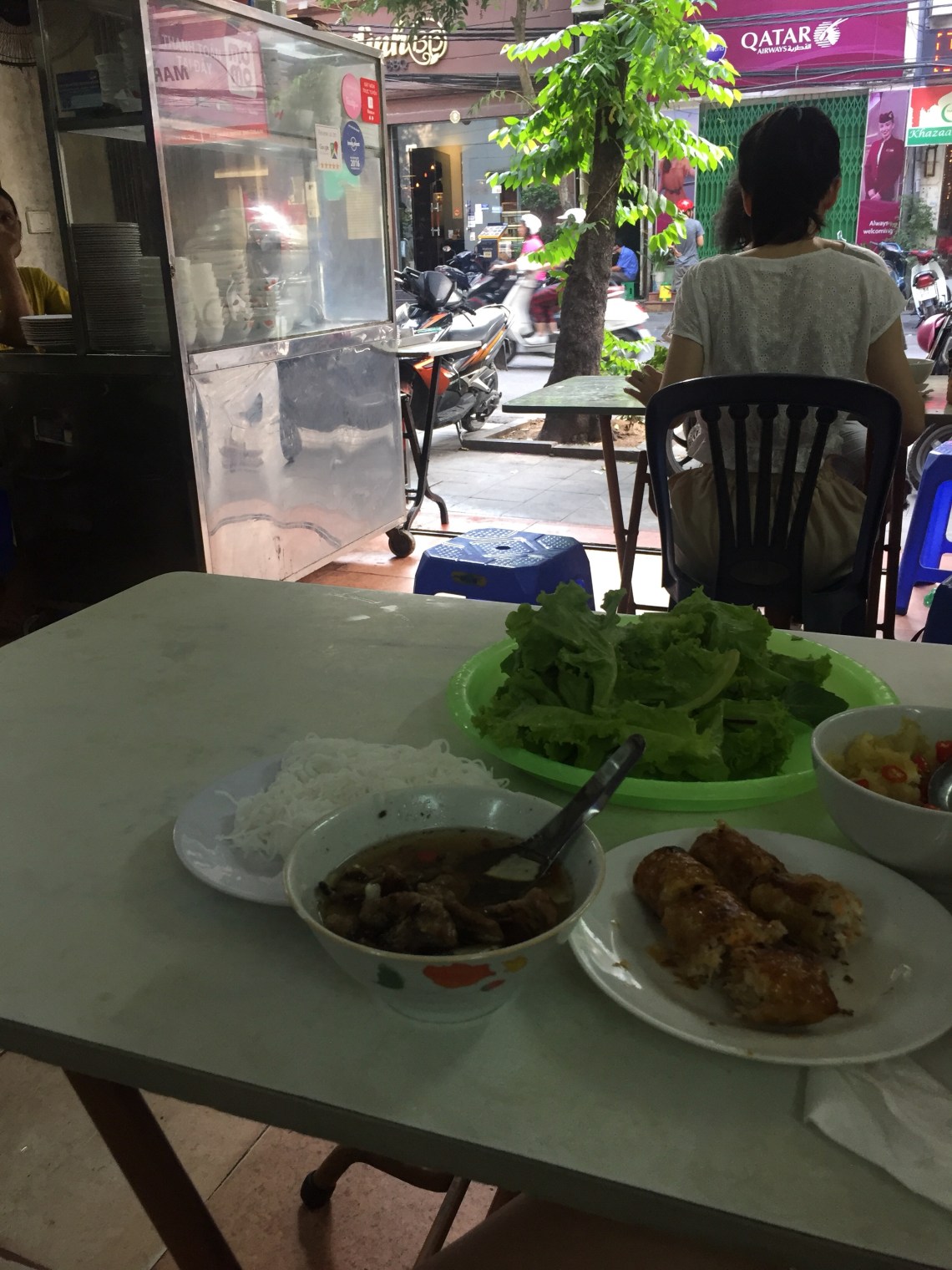 Zurück in die Altstadt hab ich wieder ein Taxi genommen, um dann eine Empfehlung aus dem Lonely Planet für eine Bun Cha (gegrilltes Schweinefleisch mit Reisnudeln) mit Nem Cua (Frühlingsrollen mit Garnelen) zu testen. Da ich mir vorher eine Kaffee auf Eis gegönnt hatte, war die Portion leider etwas viel für mich. Aber wie jedes Streetfood hier einfach unglaublich lecker. Ich habe mir zuhause viele Videos über das Essen hier angeschaut und es ist wirklich alles so gut. Und da keine Milch verarbeitet wird, geht es meinem Magen auch gut 🙂
