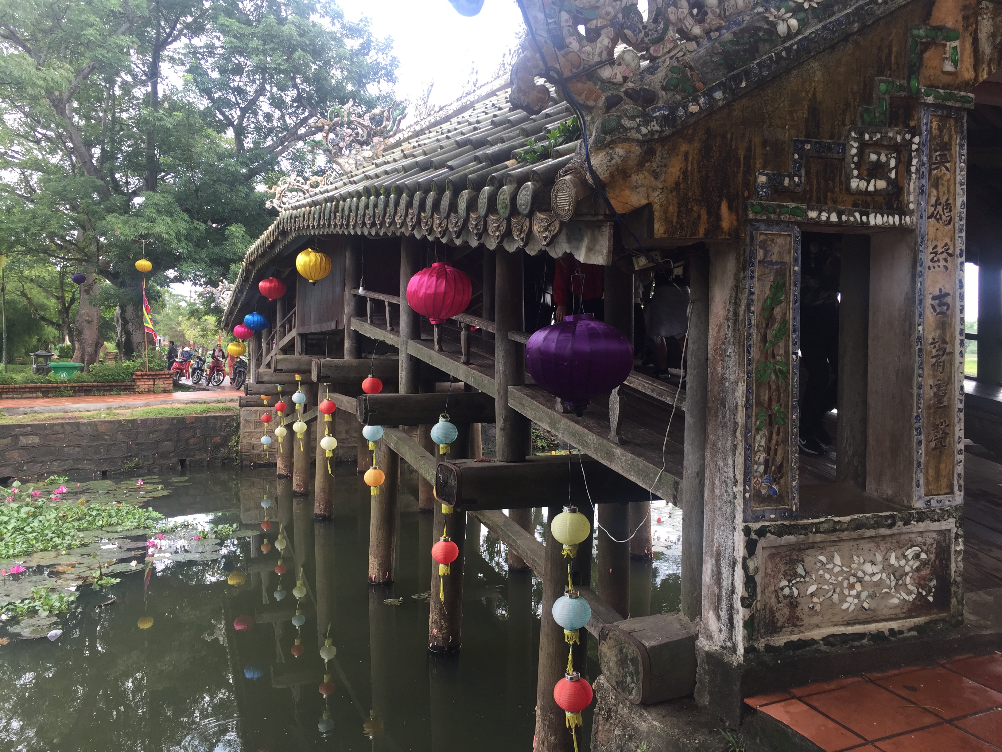 Mein Hotel in Hoi An heißt Hoi An Hai Au Boutique Hotel und befindet sich ca 500 Meter von der Altstadt entfernt. Hier bleibe ich für 4 Nächte und habe etwas mehr für die Übernachtung investiert, um mal ein größeres Zimmer und schöneres Bad zu haben. Da es regnet, die richtige Wahl. Das ganze Hotel ist von außen mit Lampions geschmückt und auch die Straße ist überall geschmückt. So hab ich mir das vorgestellt.