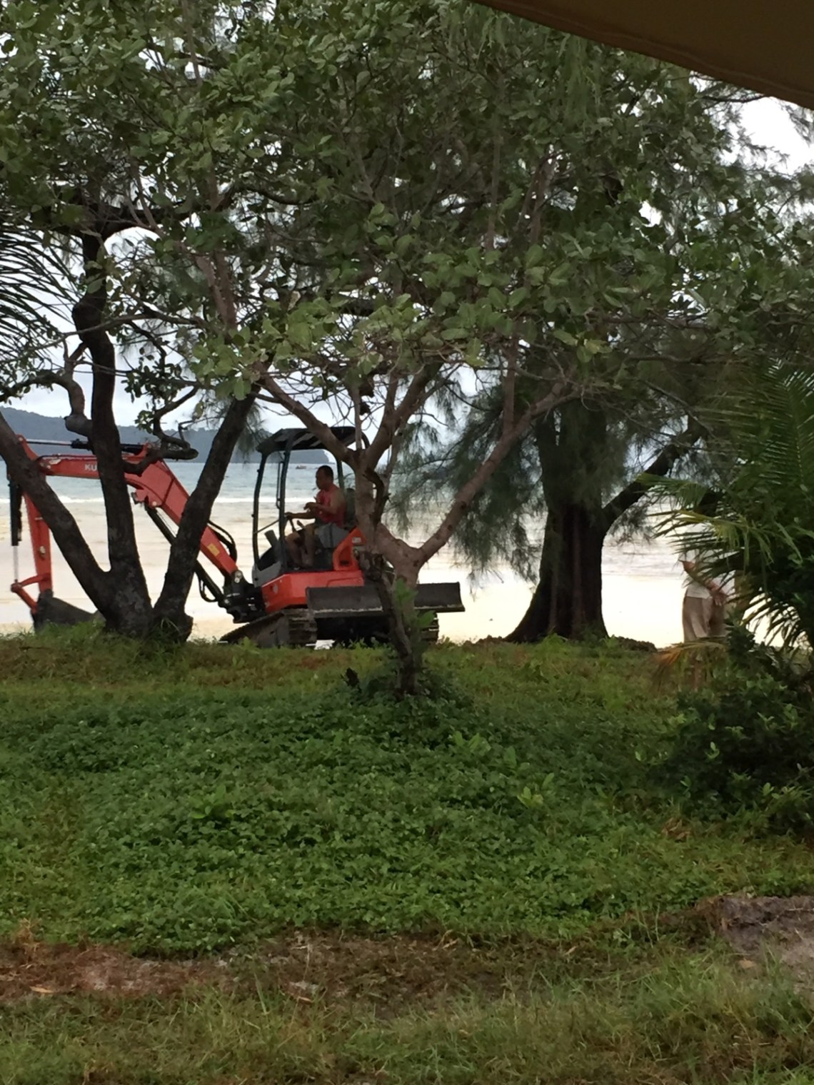 Man konnte erahnen wie schön es bei Sonnenschein aussehen wird 🙂 also haben wir uns auf eine erholsame Nacht und Sonnenschein gefreut. Auch diesmal hatten wir kein Glück. Morgens um sechs Uhr wurden wir von zwei Baggern geweckt die direkt an unserem Bungalow vorbei gefahren sind und vor unserer Tür am Strand anfingen zu baggern. Keine Erholung… ging bis halb acht.. Der Besitzer meinte später beim Frühstück dass es nur heute passiert ist weil er Sand vom Strand für den Obstgarten gebraucht hat der neu hinter den Bungalows gebaut wird. Zu 99% würde das morgen nicht mehr passieren. Wir sind gespannt…