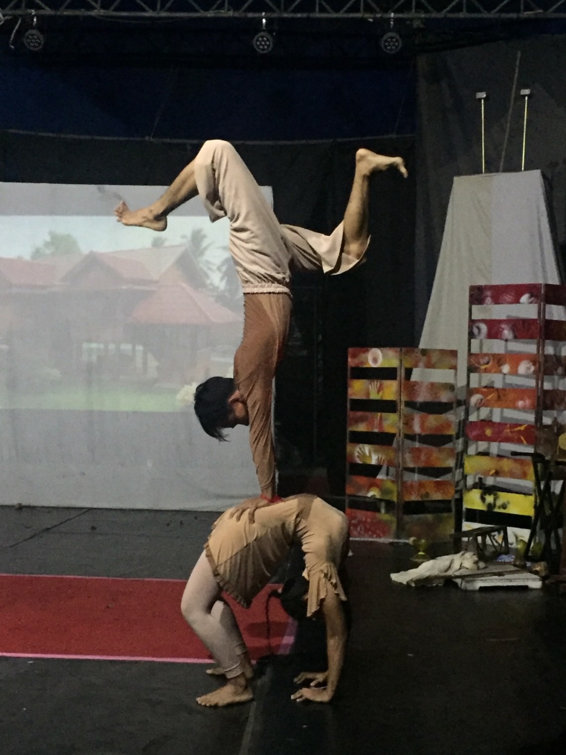 Gegen fünf musste ich allerdings wieder im Hotel sein denn um sechs kam der Fahrer der mich zum Zirkus fahren sollte. Der Zirkus Phare ist wirklich empfehlenswert. Es ist eine Artistenshow ähnlich Flic Flac oder Cirque de Soleil. Die Artisten sind alle Kambodschaner und kommen aus armen Verhältnissen. Sie dürfen kostenlos in der Artistenschule oder Kunstschule lernen und ihre Ausbildung machen und gehen danach oft zu weltweit bekannten Shows oder werden Künstler. Die Darsteller hier sind Idole für die Kinder. Das halbe Zelt saß voll mit Kindern die mit großen Augen ihre Stars angehimmelt haben 🙂 Die Aufführung war super. Es war viel Komik dabei und ich hatte viel Spaß. Außerdem gab es Caramel Popcorn 🙂