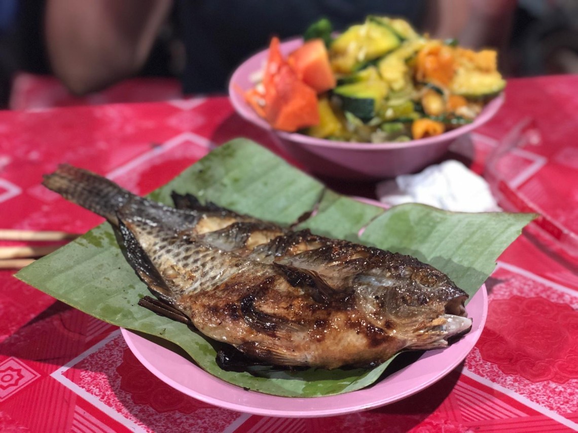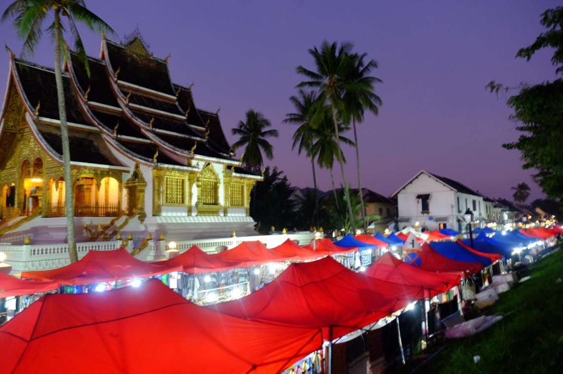 Abends sind wir noch über den Nachtmarkt gelaufen und waren in der Streetfood-Straße essen. Sie befindet sich ganz am Anfang des Nachtmarkts auf der Sisavangvong Road. Dort gibt es Grillstände und diverse Garküchen. Wir hatten vegetarisches Buffet für 1,5 € und gegrilltes Hähnchen. Und zum Nachtisch Zitronentartes 🙂