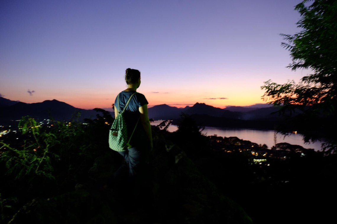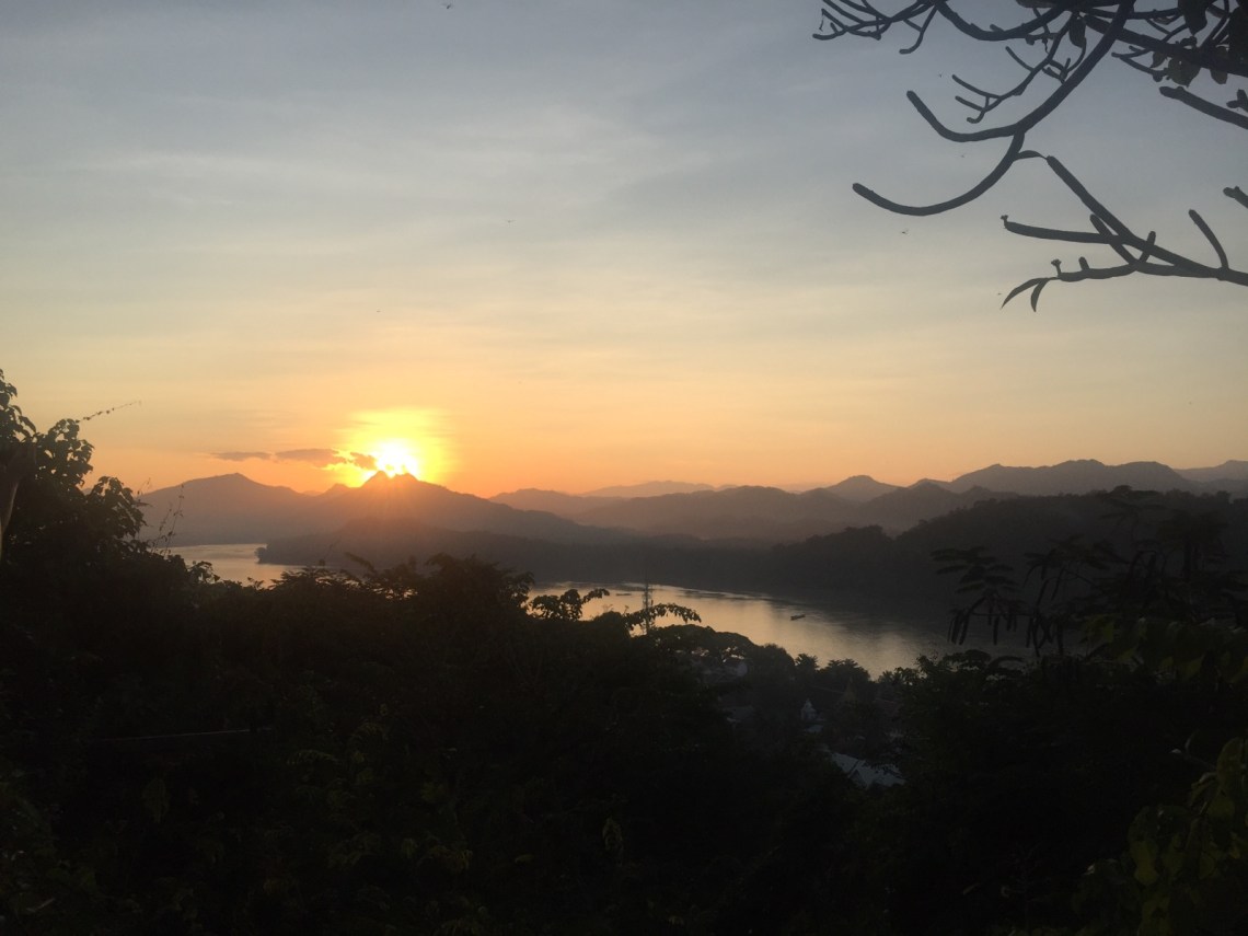 Da es unser letzter Tag in Luang Prabang ist haben wir den Nachmittag ruhig angehen lassen und uns nochmal ins Joma begeben damit ich einen Iced Matcha Latte genießen konnte. Zum Abschluss sind wir nochmal auf den Mount Phousi gelaufen um in Ruhe und ohne Fotodrang den Sonnenuntergang anzuschauen. Wir wurden dort von Kindern angesprochen die mit uns Englisch sprechen wollten um sich zu verbessern. Es hat Spaß gemacht und es ist schön zu sehen dass man so auch etwas von deren Leben erfährt. Sie wohnen zwar in Luang Prabang und gehen dort zur Schule, ihre Familien leben allerdings viele Kilometer entfernt. Tolle Kinder 🙂