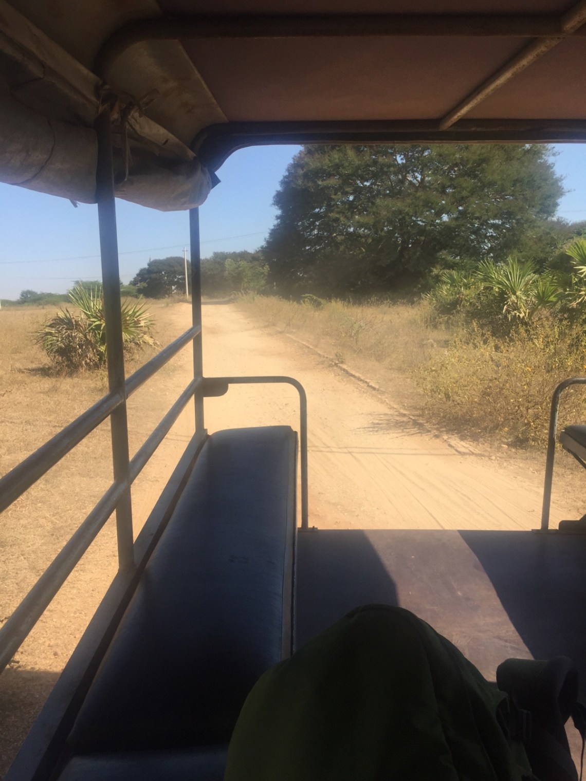 Also der Bus war wirklich groß und auch bequem allerdings war es dann doch ein Local Bus der über die Landstraße gefahren ist und nicht über den Highway und an allen Ecken angehalten hat und Passagiere ein und ausgestiegen sind. Da war mir schon klar dass die 8 Stunden etwas untertrieben waren… Im Bus gab es einen Bildschirm auf dem burmesische Liebesfilme liefen. Ich habe die Sprache nicht verstanden aber man hat auch so gesehen worum es geht und es war sehr unterhaltsam. Leider hat der Junge neben mir gleichzeitig auch noch Musik auf seinem Handy gehört. Ohne Kopfhörer natürlich und er hat sich auch ziemlich breit gemacht was dazu geführt hat dass ich etwas eingequetscht da saß. Aber die Sitze waren wenigstens bequem. Verstanden hat mich keiner aber wenigstens haben sie mir zeigen können wo die Toilette auf der Raststätte ist und wo ich Getränke kaufen kann. Ich habe zwischendurch auf die Karte geschaut und gemerkt dass wir niemals um halb sechs in Taungoo sein werden. Mir wurde etwas mulmig weil ich gelesen hatte dass es schwierig sein kann im Dunklen ein Taxi zu finden weil der Ort nicht so groß ist. Das Hotel hatte ich angeschrieben wegen eines Pick ups aber sie meinten die Busse halten immer woanders deswegen können sie mich nicht abholen. Also habe ich gehofft dass dort wenigstens ein Fahrer steht und der auch noch etwas Englisch kann. Der Bus hielt an und ich habe zum Glück auf die Karte geschaut und gesehen dass wir in der Stadt sind. Sonst wären sie weiter gefahren 🙂 Als ich ausgestiegen bin stand dort ein Fahrer und wollte mich mit dem Motorrad fahren. Da ich leider Angst habe auf ein Motorradtaxi zu steigen habe ich mit Händen angedeutet dass ich ein Tuk Tuk möchte. Ein Rikscha-Fahrer wurde gerufen. Das ist ein Motorrad mit kleinem offenen Beiwagen. Mir blieb nichts anderes übrig als dort aufzusteigen. Den Rucksack haben sie festgebunden und ich saß vorne auf der Ecke. Also auch nicht ungefährlicher als ein Motorrad 🙂 Der Fahrer kannte zum Glück das Hotel Myanmar Beauty 2, welches außerhalb des Ortes liegt. Ich war froh endlich nach über neun Stunden aus dem Bus raus zu sein.