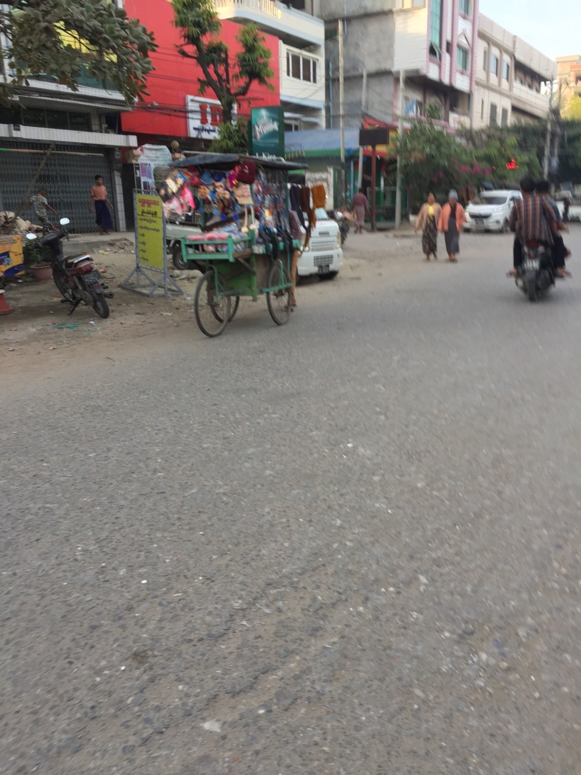 Den restlichen Tag habe ich in Mandalay damit verbracht im Café Nova Matcha Latte zu trinken und shoppen zu gehen. Ich war im Diamond Einkaufszentrum welches einen großen Supermarkt im Erdgeschoss hat. In den restlichen Etagen gibt es viele Bekleidungsgeschäfte und Friseure. Viele Läden stehen leer und man kommt sich ein bisschen vor wie in einer ausgestorbenen Stadt. Aber der Supermarkt war gut. Ich war die einzige Europäerin dort und ich wurde beobachtet und fotografiert wie ich mit meinem Einkaufskorb vor dem Bodylotion-Regal stand 🙂 Habe mal ein bisschen Beauty für mich gebraucht. Nach 10 Wochen im Staub und Hitze ist das mal nötig. Also Gesichtsmasken und Aloe Vera-Thanaka Gel ab in den Korb und eine neue Zahnbürste hab ich mir auch noch geleistet. Getränke und Kekse für die Fahrt nach Taungoo habe ich auch noch gekauft. Ganze 6€ waren es insgesamt 🙂 Danach bin ich zum Rain Forest Restaurant gelaufen. Die Strecke war sehr interessant weil überall am Straßenrand Garküchen standen und ich die Menschen bei ihrem Alltag beobachten konnte. Im Rain Forest gibt es thailändische Küche und ich habe wie so oft in letzter Zeit Curry gegessen 🙂 Schließlich bin ich wieder ins Hotel gefahren und habe einen Beauty Abend gemacht 🙂