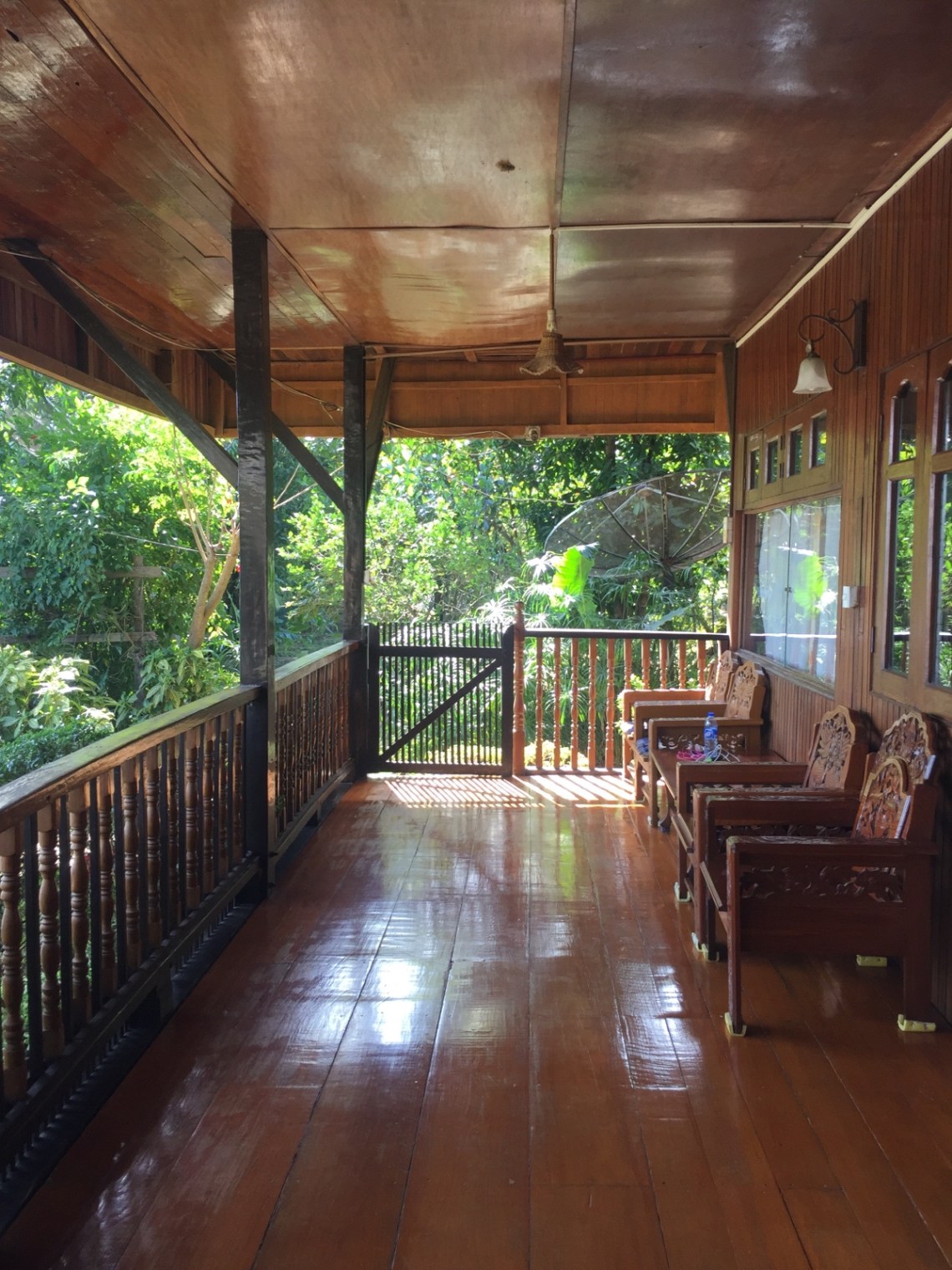 Das Hotel ist am Rande der Reisfelder. Es ist eine sehr ruhige Lage inmitten eines großen Gartens und der Felder. Das Hotel besteht aus drei Gästehäusern wovon eins mit Blick auf die Felder ist, die anderen haben Gartenblick. Mein erstes Zimmer war sehr groß und mit einer wunderschönen Veranda. Einfach herrlich morgens die Vorhänge aufzumachen und die Felder zu sehen.