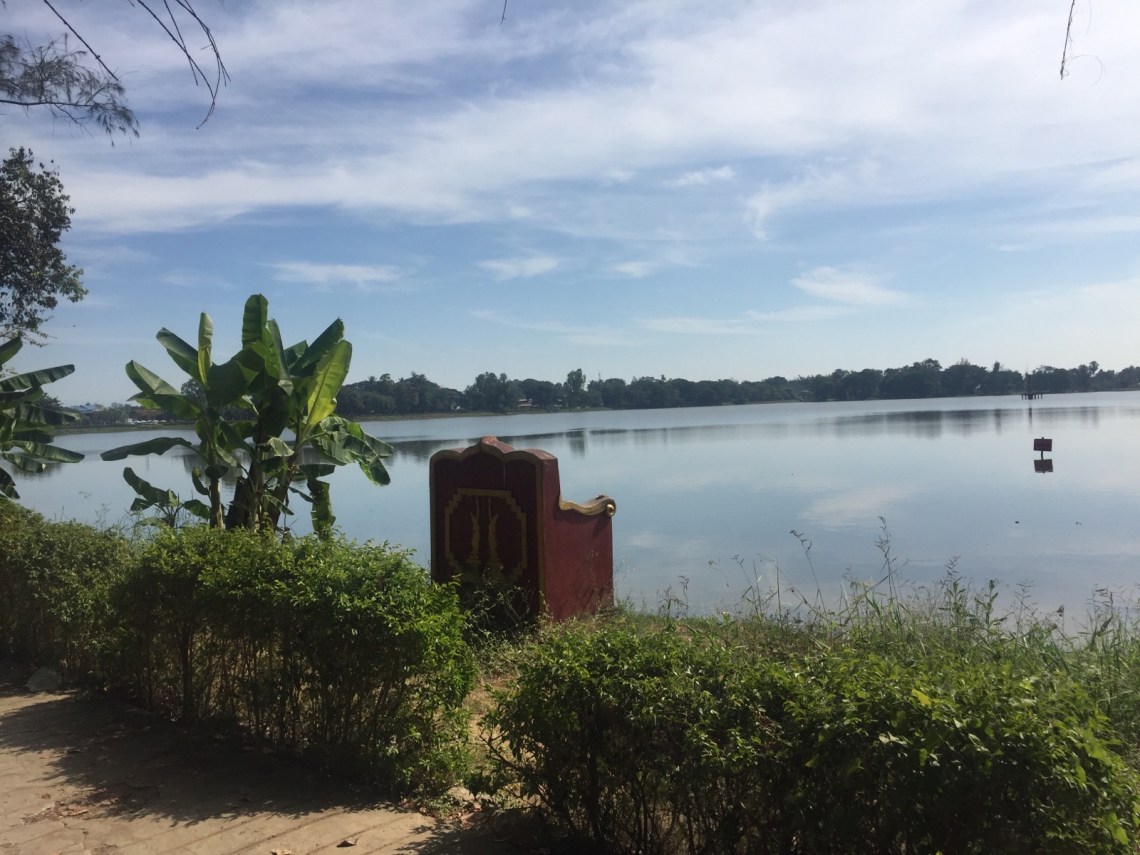 Dann bin ich zum See gelaufen und habe mich auf den beiden Inseln auf Bänke und in den Schatten gesetzt. Da es gerade Mittag war haben dort viele Schüler die Pause verbracht. Sie haben mich immer angeschaut und gekichert wenn ich zurück gegrinst habe 🙂 Rund um das Ufer sind Steinbänke aufgebaut und man geht über eine Brücke auf die beiden Inseln. Ein sehr entspannter Ort und genau das richtige für eine weitere Pause 🙂
