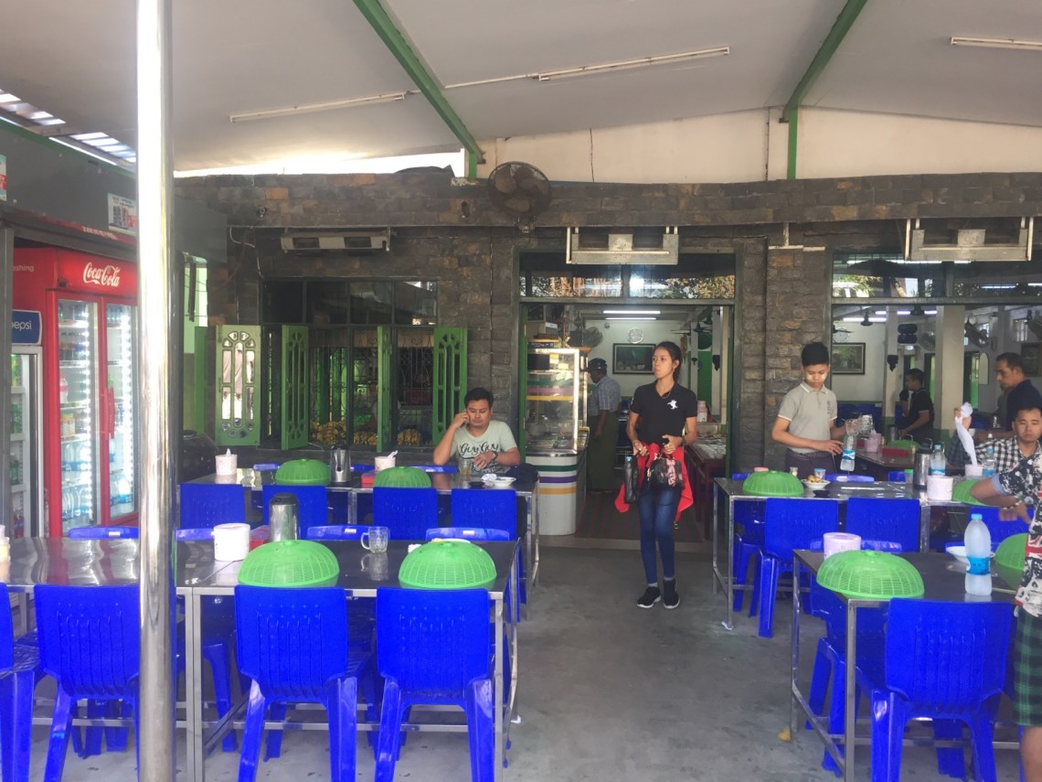 Das Busticket zu buchen war etwas kompliziert 🙂 Auf den gängigen Buchungsseiten war leider kein Bus mehr verfügbar. Wir haben dann die Busgesellschaft Shwe Pyi Lwin angerufen aber leider war deren Englisch nicht so gut und daher hat das nicht geklappt. Also haben wir die Rezeption im Hotel gebeten die Busgesellschaft anzurufen. Das hat funktioniert und wir haben per Telefon die Sitze bestätigt bekommen. Die Sitzplatzwahl ist hier sehr wichtig da unterteilt wird in Mann, Frau und Mönche. Außerdem nach Einheimisch und Ausländer. Frauen dürfen nicht neben Mönchen sitzen. Am nächsten Morgen sind wir um halb sechs mit dem Taxi zur Busstation gefahren, die weit außerhalb am Highway nach Pathein liegt. An der Busstation gibt es mehrere kleine offene Räume. Für jede Busgesellschaft einen und davor steht der Bus. Dort haben wir das Ticket bezahlt, 10000 Kyat pro Person und haben uns in den Raum auf die Holzbänke gesetzt. Die Sitze im Bus waren leider sehr eng und wir hatten kaum Platz. Die Einheimischen die zwischendurch eingestiegen sind, saßen auf Plastikstühlen im Gang. Nach vier Stunden gab es eine Pause und wir konnten in einer Teestube etwas essen. Man hat dort Reis bestellt und konnte sich aus vielen verschiedenen Schüsselchen die aussuchen die man mochte. Es war erstaunlich lecker und wir haben uns gefreut dass wir uns getraut haben 🙂