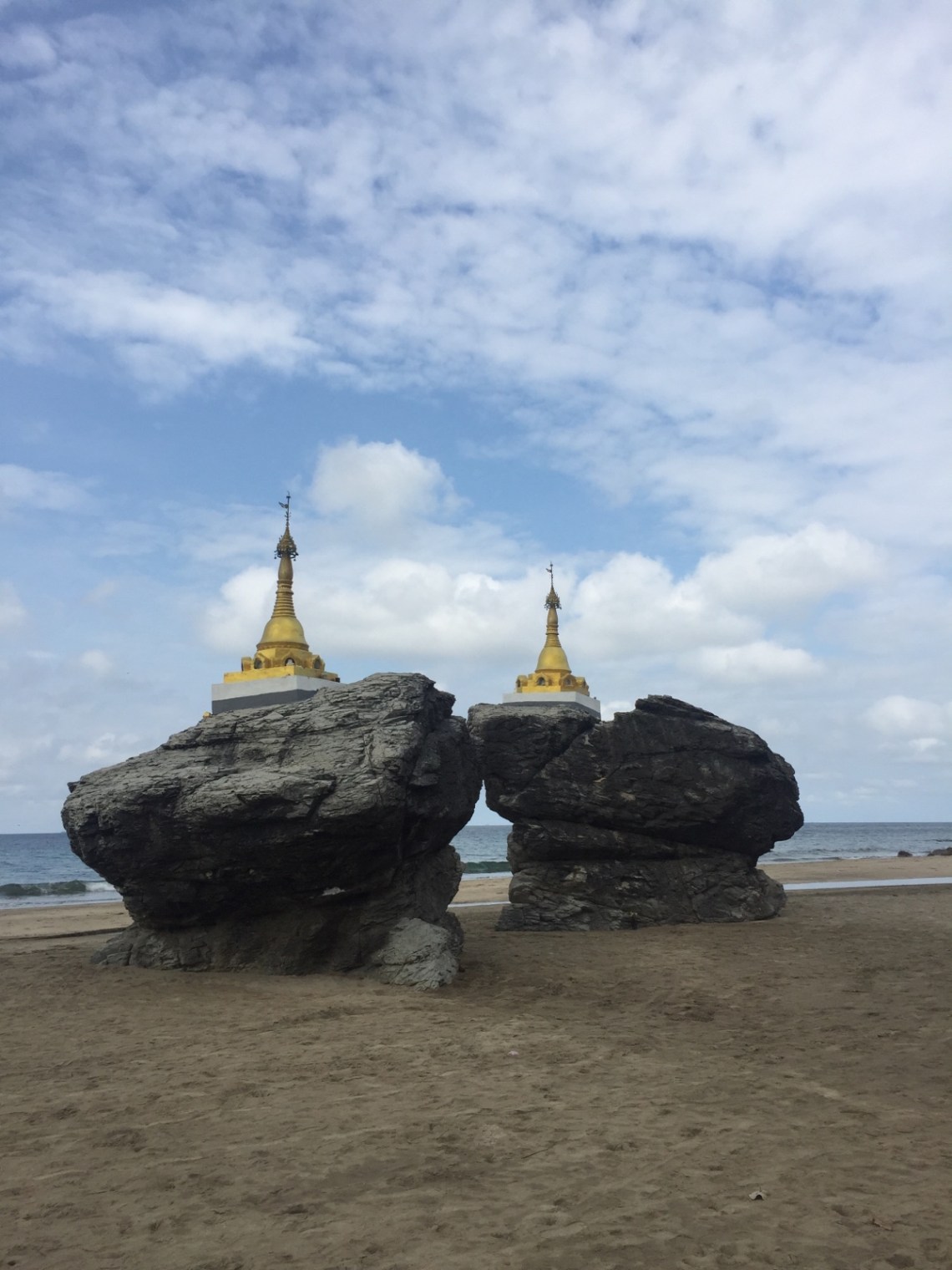Wir haben unseren Aufenthalt dort von 4 Nächte auf 2 Nächte verkürzt weil uns der Lärm der Karaokebar und des Stromgenerators genervt hat. Der Strand ist sehr schön aber ohne Schlaf ist es nirgendwo erholsam. Wir hätten auch lieber ein Hotel direkt am Strand gehabt aber leider waren alle zu teuer oder ausgebucht. Also sind wir heute mit dem Bus wieder nach Yangon gefahren und werden morgen nach Mandalay und dann in den Norden fahren. Ich bin noch nie so viel Bus gefahren wie auf dieser Reise… 🙂