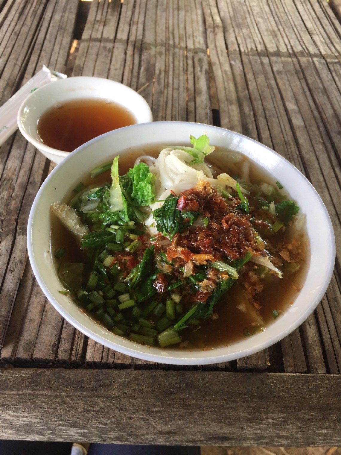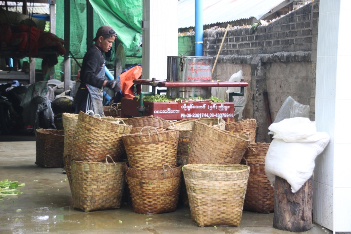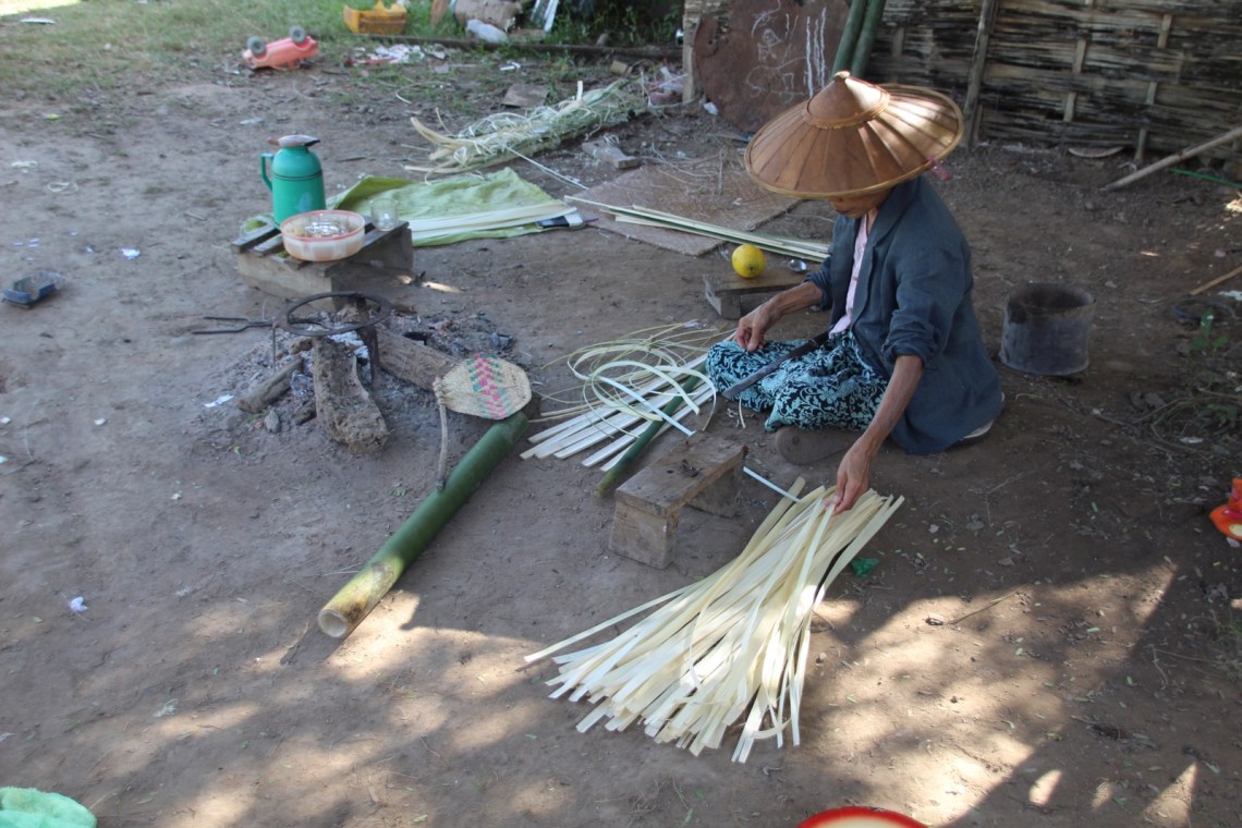 Zum Wasserfall mussten wir dann doch etwas den Berg hoch. Aber der Wasserfall war toll und vor allem die Aussicht über die Felder war gigantisch. Wir haben dort eine Pause gemacht und uns mit Cho über die Unterschiede zwischen Myanmar und Deutschland unterhalten was das Familienleben, Heiraten, Kinder bekommen, Jobsuche, Steuern und Rente betrifft. Hier ist das alles ganz einfach. Steuern sind 5 Prozent, Rente und Versicherungen gibt es normalerweise nicht. Eine Hochzeit ist teuer und die Frau zieht dann zum Mann. Finanzielle Regelungen zur Scheidung gibt es nicht. Das ist hier aber auch nicht nötig denn die Familie ist hier das oberste Gut und es geht weniger um Geld als um das Zusammenleben. Auf dem Rückweg sind wir in ein kleines Dorf zum Mittagessen gelaufen. Cho‘s Großeltern haben dort ein kleines Restaurant mit Teestube. Es gab leckere Shan-Nudeln, jede Menge Tee und frisches Obst. Sogar die Senfblättersuppe die die Oma gerade gekocht hatte mussten wir probieren 🙂 Ein sehr schöner und berührender Moment. Danach sind wir durch weitere kleine Dörfer gelaufen und konnten sehen wie Bambusfächer, Holzschnitzereien, Zigaren und Bambuskörbe hergestellt werden. Keine Touritour, wir sind einfach dort vorbei gelaufen und haben bei der täglichen Arbeit zugeschaut. Außerdem hat Cho uns viel über die buddhistischen Traditionen hier erzählt. Zum Beispiel gibt es in jedem Dorf einen Holzturm, der als Schrein gilt und der das Dorf beschützen soll. Die Bewohner bringen Opfergaben dort hin. Da die Dörfer nah beieinander liegen kann man sich so orientieren. Immer wenn man einen neuen Turm sieht weiß man dass man in einem neuen Dorf ist 🙂