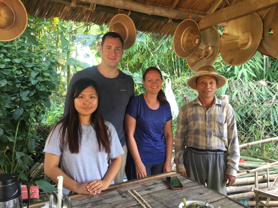 Cho ist ein toller Guide und eine unglaublich starke Frau. Wir haben sie gefragt warum überall Stacheldraht an den Häusern ist. Da hat sie auf ihre linke Wange und die Narbe gezeigt und gesagt dass öfter eingebrochen wird und sie das auch schon erlebt hat. Ihre Eltern wollen dass sie jetzt einen Thai-Box-Kurs macht. Sie ist die älteste von drei Kindern und muss für die Familie sorgen weil ihre Eltern nicht mehr arbeiten können. Leider hat sie nur wenige Aufträge für Trekking im Monat weil sie nur die Dorftour und die Felder macht. In die Berge kann sie nicht weil sie meint dass sie ihren Gästen nicht helfen kann wenn mal was passiert weil sie zu klein sei. Außerdem kommen leider im Moment nicht viele Touristen nach Hsipaw wegen der Auseinandersetzungen im Shan Staat zu dem auch Hsipaw gehört. Ich finde Cho sehr verantwortungsbewusst und hoffe das mehr Touristen sich trauen und sich den Norden anschauen. So lange man auf den erlaubten Wegen und in den Orten bleibt ist es sicher. Sie spricht außerdem sehr gutes Englisch und ihr Traum war schon immer Tourguide zu sein weil sie als junges Mädchen oft von Touristen nach dem Weg gefragt wurde und sich gefreut hat wenn sie helfen konnte. Wir sind jetzt auf Facebook vernetzt und ich werde sie empfehlen wo ich nur kann. Abends gibt sie auch noch Unterricht in der Schule. Wir hatten einen unvergesslichen Tag und ich freue mich sehr dass wir sie kennengelernt haben.