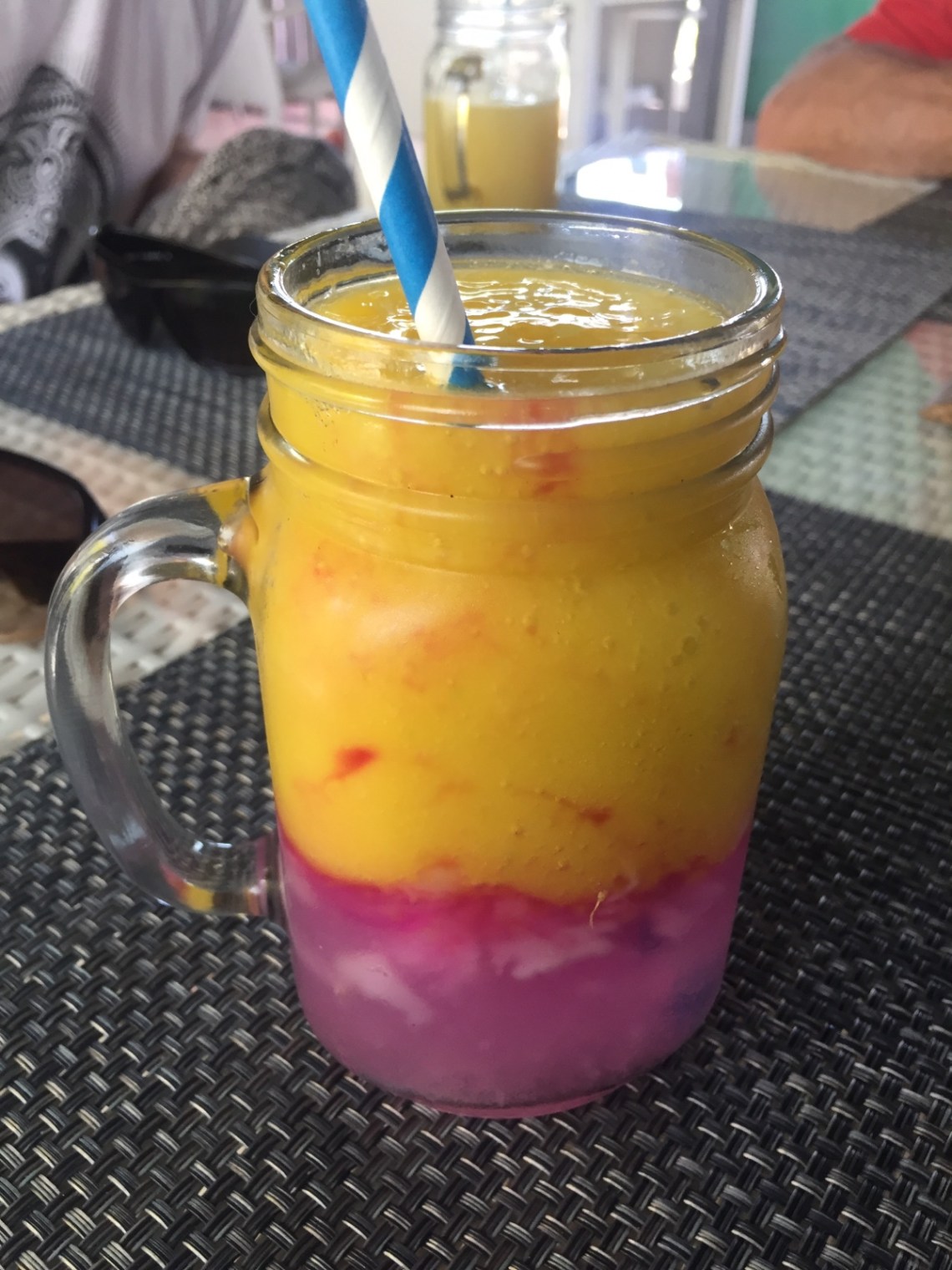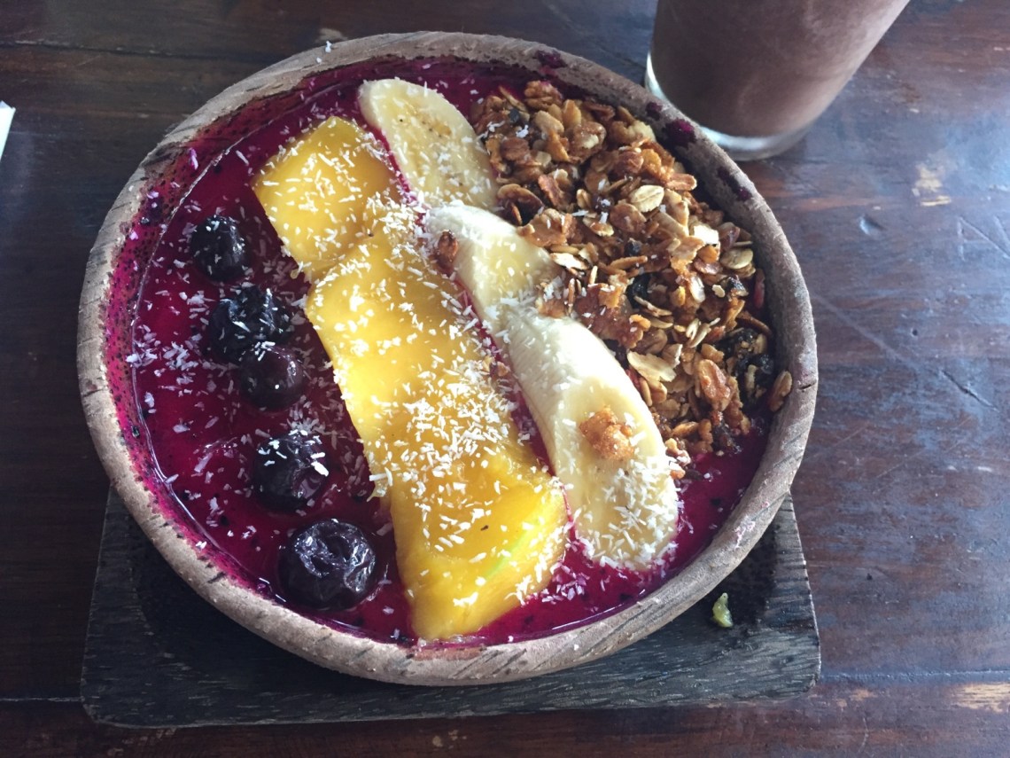Am nächsten Tag sind wir nach einem ausgiebigen Frühstück, welches hier auf der eigenen Terrasse serviert wird, zum Padang Padang Strand gefahren. Da auf dem Weg dorthin das Buddha Soul lag, haben wir eine Smoothie Stop dort eingelegt, weil die dort so lecker sein sollen. Ja stimmt 🙂