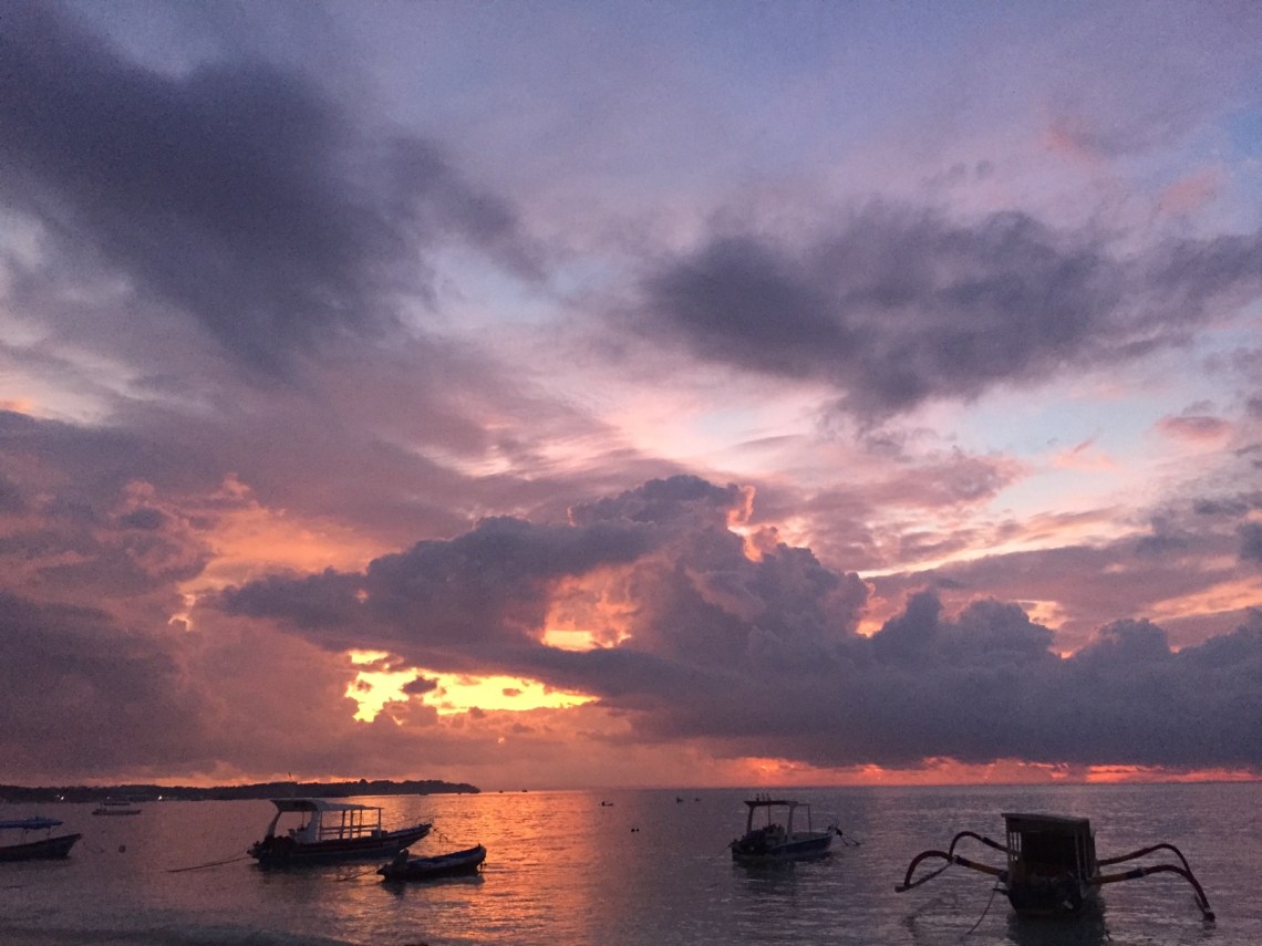 Am Sonntag Morgen mussten wir früh aufstehen denn es ging um 8.30 Uhr los zum tauchen. Das Planet Nomadas hat ein eigenes Boot. Wir waren 6 Taucher und 2 Guides und es ging zur Manta Bay und Crystal Bay zur Nachbarinsel Nusa Penida. Wir wollten Mantas und den Mondfisch sehen 🙂 Ich war schon einmal dort, hatte aber leider kein Glück. Erster Stop, Manta Bay. Die Bucht war voller Boote und Schnorchler aber man konnte schon vom Boot aus die Mantas sehen. Wunderschön:-) Leider hatte ich auch diesmal kein Glück, denn aufgrund meiner Erkältung konnte ich keinen Druckausgleich machen und musste nach 2 Minuten wieder hoch aufs Boot und den Tauchgang abbrechen. Unglaubliches Pech… Denn Christoph und die anderen hatten einen unglaublichen Tauchgang mit vielen Mantas die direkt neben ihnen geschwommen sind. Ich habe hinterher die Videos gesehen und war echt neidisch und auch etwas traurig weil ich mich so gefreut hatte. Auf den Videos sieht es aus als gleiten die Mantas in Zeitlupe vorbei aber so langsam und anmutig sind sie wirklich. Echt toll. Der zweite Tauchgang war in der Crystal Bay. Wieder viele viele Boote und Schnorchler. Ich musste oben bleiben. Und wieder hatten sie Glück denn es kam ein Mondfisch vorbei. Der Platz ist bekannt dafür dass die Tiere, die in hunderten Metern Tiefe leben, manchmal genau dort nach oben kommen. Aber das ist selten und man braucht Glück. Es war zwar nur ein kleiner aber immerhin 🙂 Ich hab ihn wenigstens auf dem Video gesehen. Alle waren überglücklich. Naja vielleicht bekomme ich ja noch eine Chance. Ich habe mich jedenfalls mitgefreut. So ist das halt beim tauchen.
