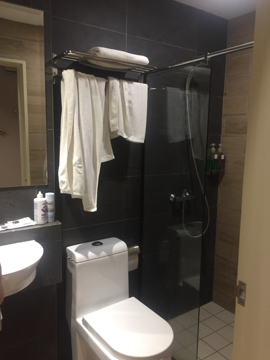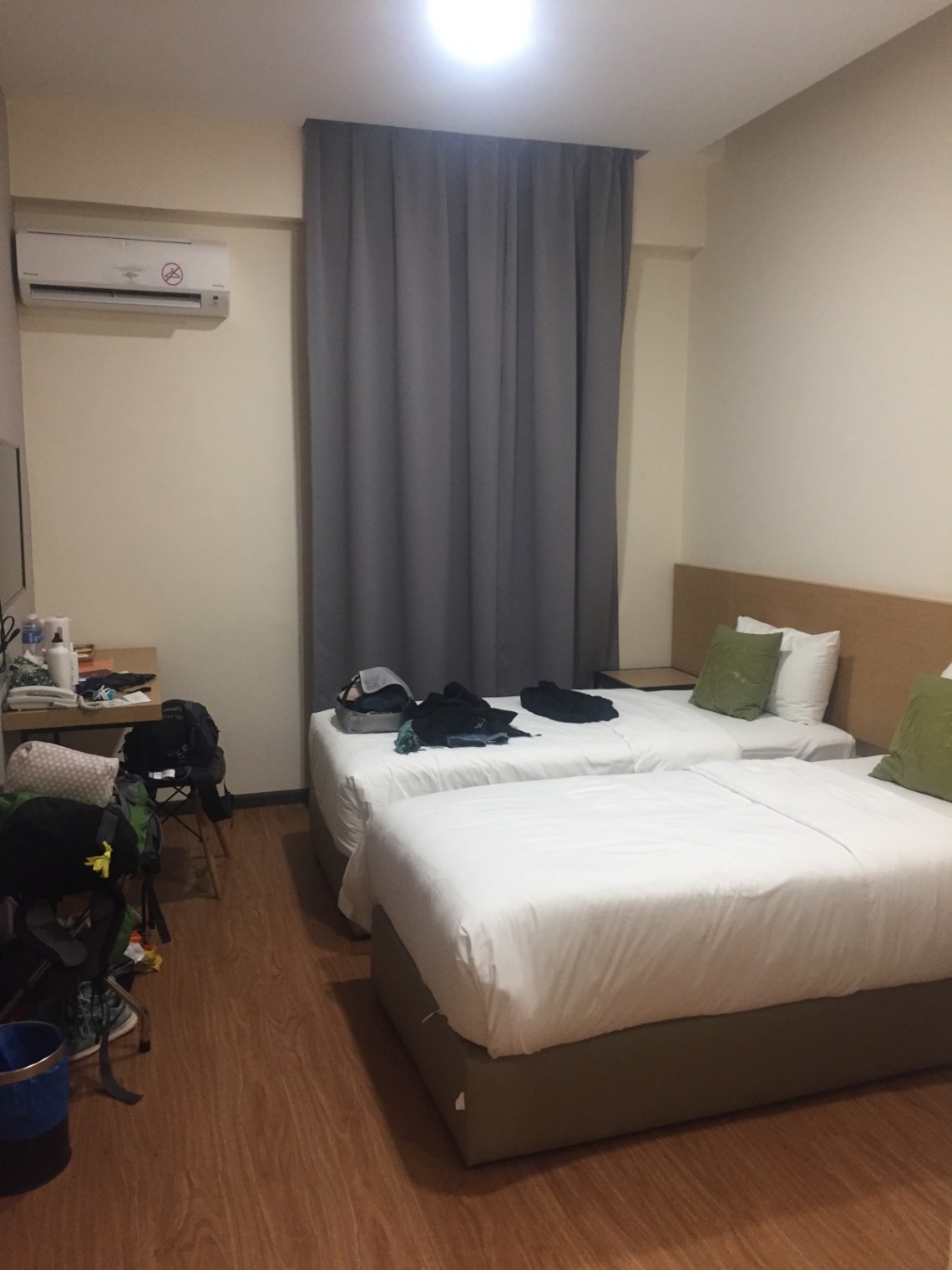 Wir sind dann abends gegen sieben Uhr gelandet und ich habe mir am Flughafen direkt eine SIM Karte von Maxis gekauft. Kostenpunkt 45 Ringgit für 6 GB gültig 30 Tage. Auch die Taxibuchung in die Innenstadt war problemlos. Es gibt einen Schalter an dem man sein Hotel angibt und dann ein Taxiticket kaufen kann. Die Preise sind Festpreise je nach Kilometeranzahl. Und so war ich um halb neun im Hotel Qlio. Mein Zimmer ist normal groß, es gibt Klima, Safe, Schreibtisch, Wasser und Wasserkocher und sogar einen Föhn. Dafür dass viele Hotels aufgrund des Chinese Newyear ausgebucht waren habe ich doch noch was schönes gefunden.