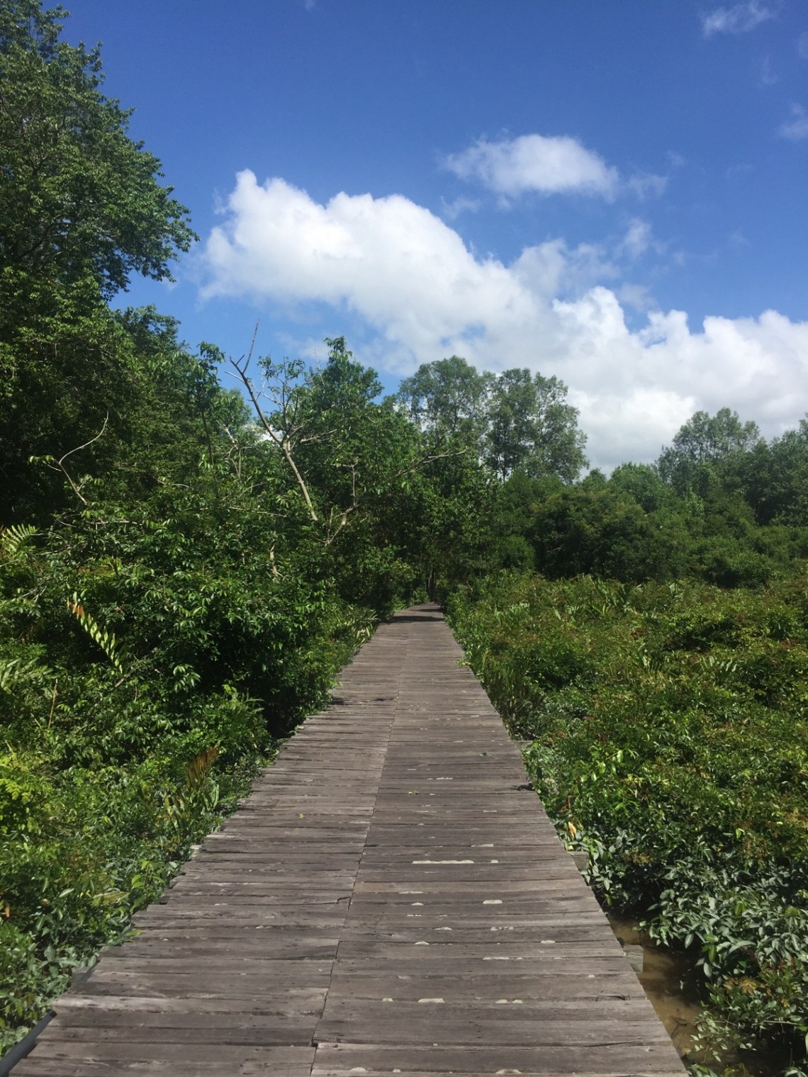 In der Pause zwischen den Fütterungen kann man entweder etwas Essen im Restaurant oder sich die Gegend anschauen. Um 13 Uhr wird auch ein Film über das Reservat und die Affen gezeigt. Ich habe gebratene Nudeln bestellt, die zwar satt gemacht haben aber nicht glücklich…. Der Film war interessant und in einem klimatisierten Raum 🙂 Dann ging es weiter mit dem Shuttle zu Plattform A. Da die Plattformen weit auseinander liegen empfiehlt es sich nicht zu laufen. Plattform A führt über einen langen Holzweg zu einer offenen Holzhalle. Auf dem Weg dorthin kann man Schlammspringer zwischen den Mangrovenwurzeln beobachten. Von weitem konnte man schon die Affen in den Bäumen sehen. Manche haben auch schon auf dem Tisch gewartet. Ich habe mich diesmal auf die Affen in den Bäumen konzentriert und ihnen beim faulenzen und spielen zugeschaut. Irgendeiner der kleinen Affen hat ja immer Dummheiten im Kopf und zieht die anderen am Schwanz oder an der Nase. Das war wirklich lustig 🙂 Um drei ging es wieder mit dem Shuttle zurück nach Sandakan. Der Ausflug war wirklich toll und jeden Cent wert. Mir ist dadurch aber noch bewusster geworden wie gefährdet diese Tiere sind und dass ihr Lebensraum geschützt werden muss.