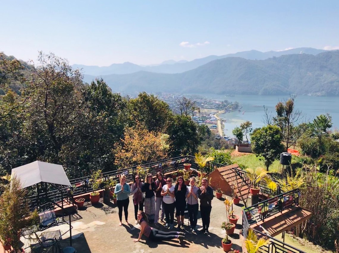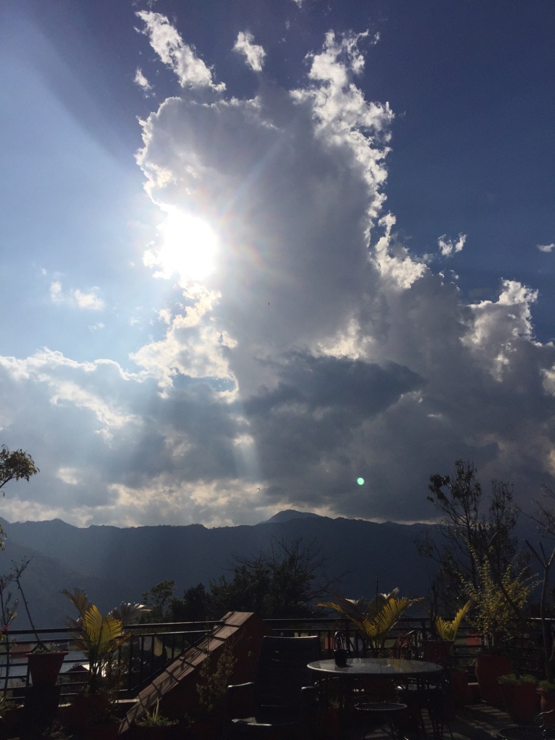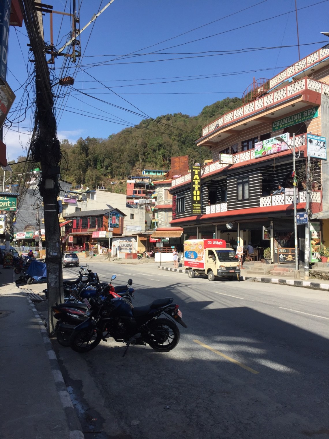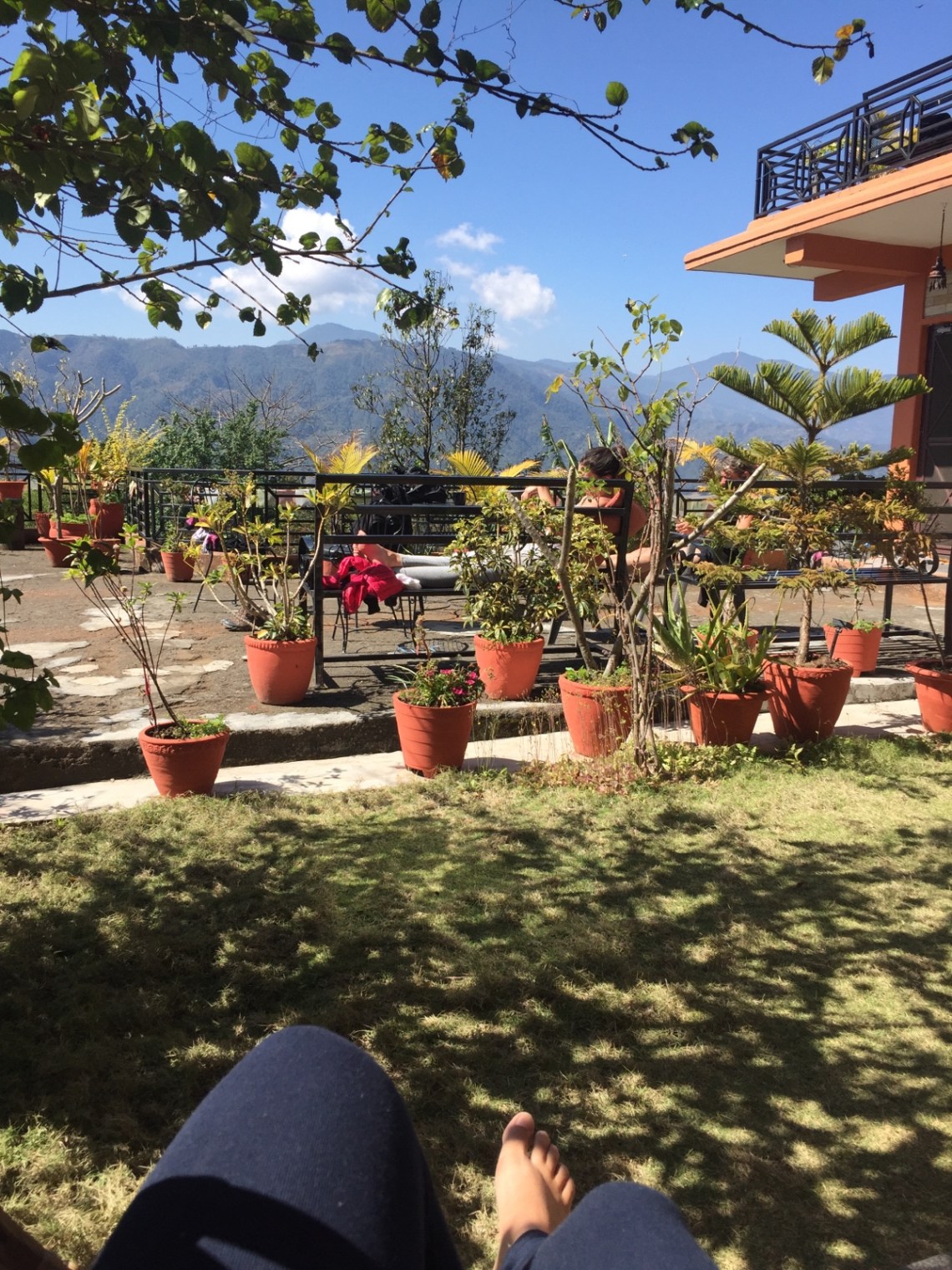 Nach dem Mittagessen hat man zwei Stunden Freizeit. Meistens habe ich gelesen und entspannt. Zweimal sind wir allerdings runter in Dorf gelaufen um Kaffee zu trinken und Schokoladenpancakes zu essen 🙂 Das gesunde vegetarische Essen war wirklich lecker aber manchmal wollten wir uns ein bisschen verwöhnen 🙂 Dafür muss man allerdings den Berg hinunter laufen bzw klettern. Je nachdem welchem Weg man nimmt. Runter dauert ca 10 Minuten, den kürzeren steileren Weg und hoch ca 20 Minuten. Also ich habe auf jeden Fall 20 Minuten gebraucht. Die Mädels die vorher zum Trekking im Himalaya waren, waren natürlich schneller 🙂 Aber was tut man nicht alles für einen leckeren Soja-Latte und Schoko-Pancake oder Salted-Caramel-Crêpes 🙂 Einmal bin ich mit Juliette, einer Französin, auf den Berg hinter dem Center gelaufen um die Aussicht zu genießen. Man muss ca 45 Minuten dem Berg hinauf laufen und kann dann über ganz Pokhara und den See schauen. Es war richtig anstrengend aber es hat sich gelohnt.