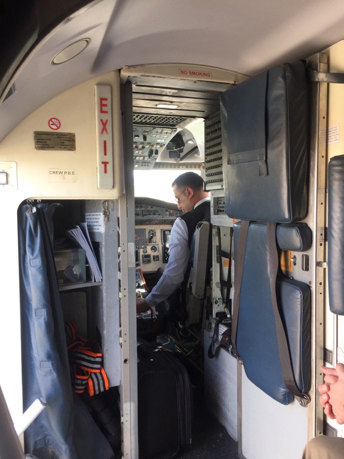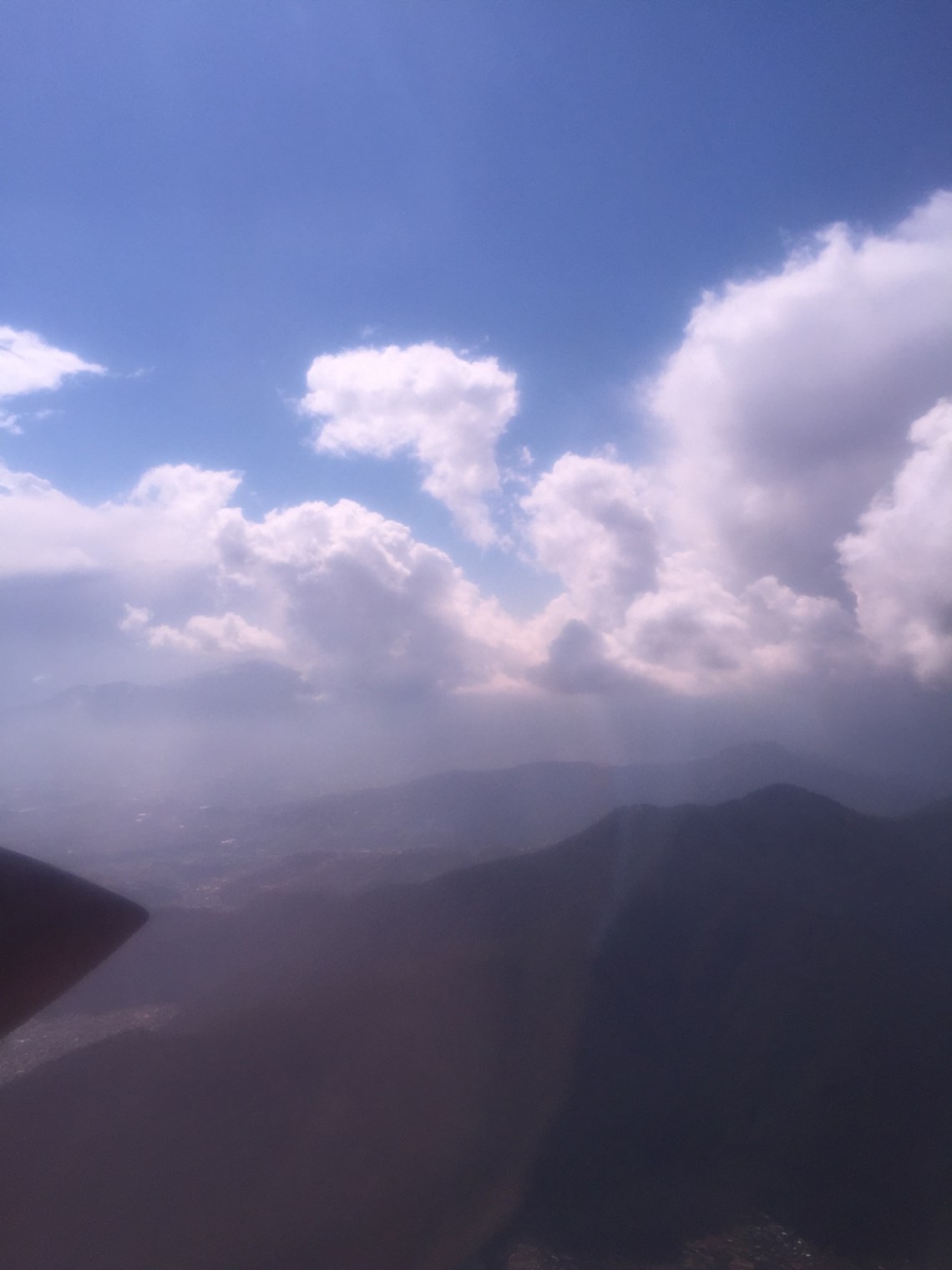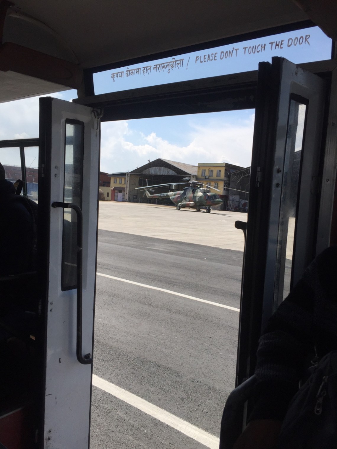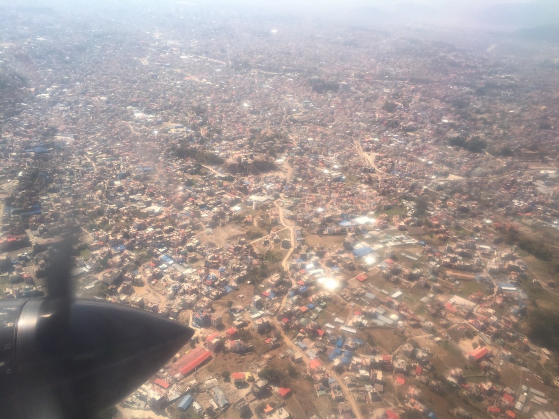 Die Anreise war auch abenteuerlich. Der Fahrer des Hotels hat mich zum nationalen Flughafen in Kathmandu gebracht. Es war eine kleine Halle die zwei Eingänge hatte, einen für Männer und einen für Frauen 🙂 Direkt hinter dem Eingang befinden sich die Schalter von Yeti Airlines. Dort hatte ich meinen Flug gebucht. Schalter ist übertrieben, es sind eher vier kleine Aufsteller und dahinter steht ein Schubkarren womit dann das Gepäck zum Flugzeug gebracht wird. Die Sitznummern werden nach der Reihe vergeben. Da ich früh da war hab ich die Nummer 1 direkt hinter dem Piloten bekommen 🙂 Leider auf der linken Seite, denn von rechts kann man den Himalaya sehen sofern es keine Wolken gibt. Ich wurde auf einen früheren Flug „umgebucht“ und durfte direkt zum Gate. Es gibt zwei Gates die nach Fluggesellschaften aufgeteilt sind. Mein Abflug hatte Verspätung somit war ich wieder bei der gleichen Abflugzeit wie für meinen ursprünglich gebuchten Flug.