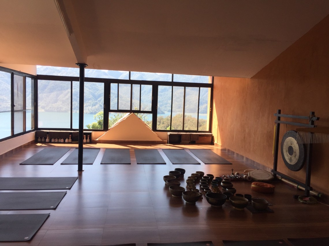 Das Retreat besteht aus einem großen Haus am Berg mit drei Stockwerken, mehreren Terrassen, einem großen Yogaraum mit Blick auf den See und einem Aufenthaltsraum zum Essen. Auf der Terrasse gibt es Schaukeln und Sitzmöglichkeiten. Es gibt nur Doppelzimmer, somit haben Alleinreisende wie ich immer eine Zimmergenossin 🙂