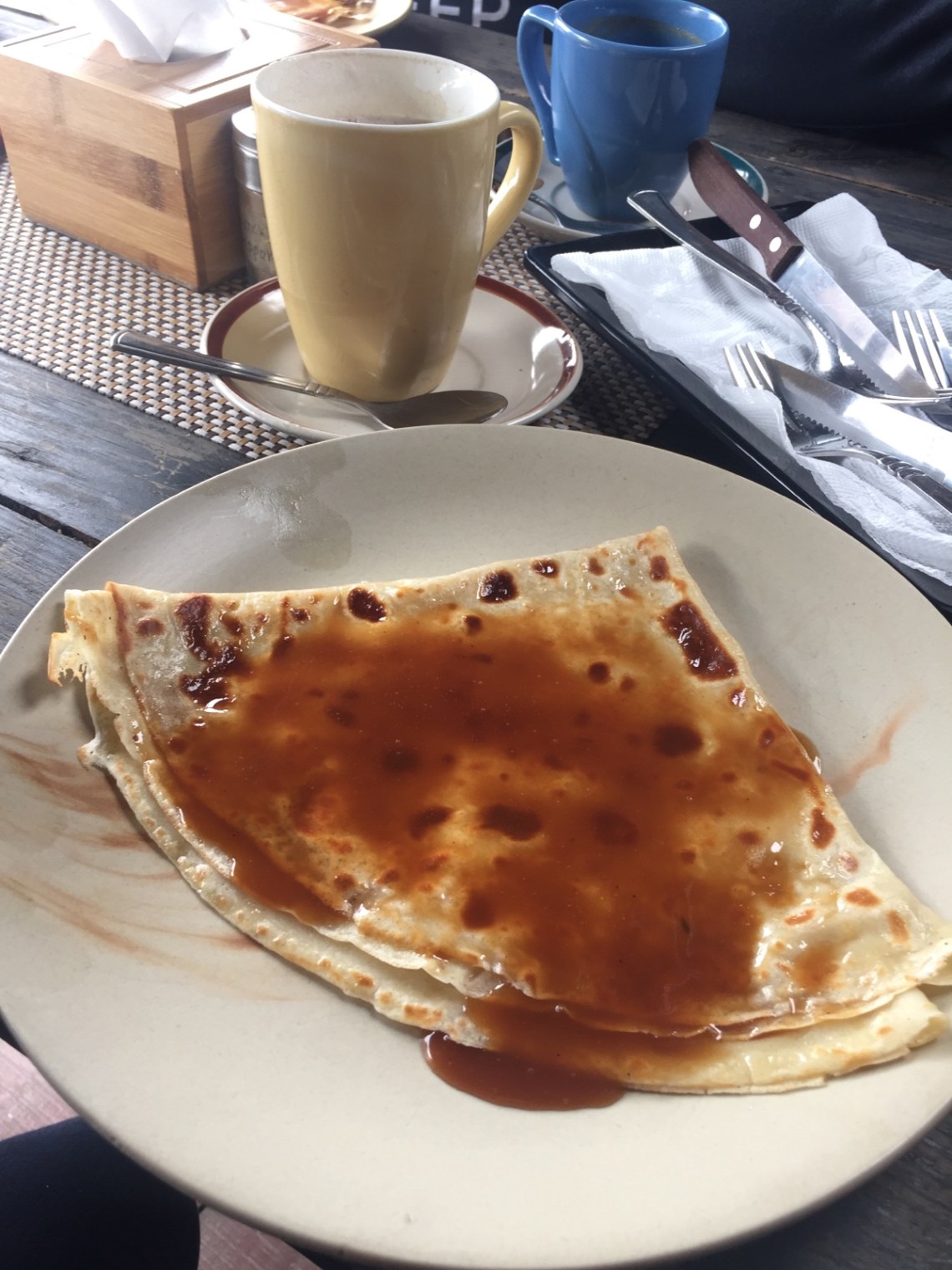 Dort wurde ich vom Yoga Center abgeholt und den Berg hinauf zum Center gebracht. Über eine sehr steile und steinige Straße. Ich dachte, mal eben ins Dorf laufen um einzukaufen wäre nicht möglich in der Pausenzeit und auch zu anstrengend, aber die Lust auf Schokoladencrepes und Kaffee haben es einige Zeit später dann doch möglich gemacht 🙂 🙂