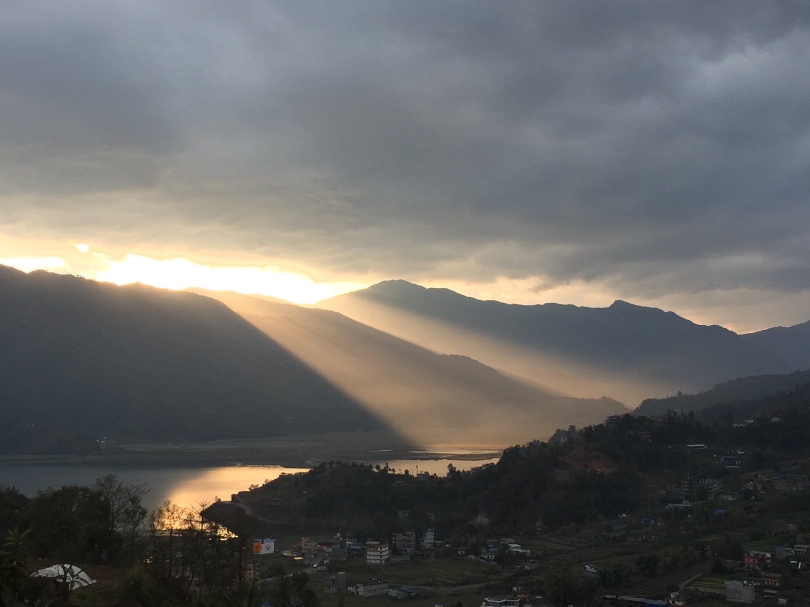 Am Donnerstag Morgen bin ich zu meinem Yoga Retreat in den Bergen aufgebrochen. Pokhara liegt unterhalb des Himalaya-Gebirges. Bei gutem Wetter kann man die Gipfel der nahen drei Achttausender sehen, Annarpurna, Dhaulagiri und Manaslu. Und den Fishtail, den Machapuchhre, dessen Gipfel wie ein Fischschwanz aussieht. Außerdem befindet es sich direkt am Phewa See. Ein wunderschönes Panorama. Das Yoga Center Purna Yoga Retreat liegt oberhalb der Stadt mit Blick auf den See und die Berge. Alleine der Aussicht wegen lohnt es sich schon.