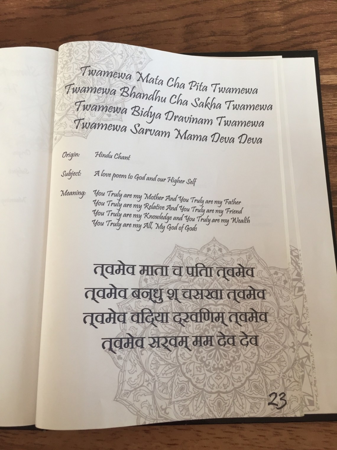Um vier Uhr ist Teepause mit Obst und anschließendem Chanting, also Singen von Mantras in Sanskrit. Das war immer sehr lustig weil die Jungs vom Yoga Center das ganze auf Instrumenten wie Akkordeon, Trommel und Tamburin begleitet haben. Manchmal war das Stück so fröhlich dass wir auch getanzt haben. Hat wirklich Spaß gemacht. Ich mag das gleichmäßige Singen und Wiederholen der Mantras. Es beruhigt und stimmt einen fröhlich 🙂